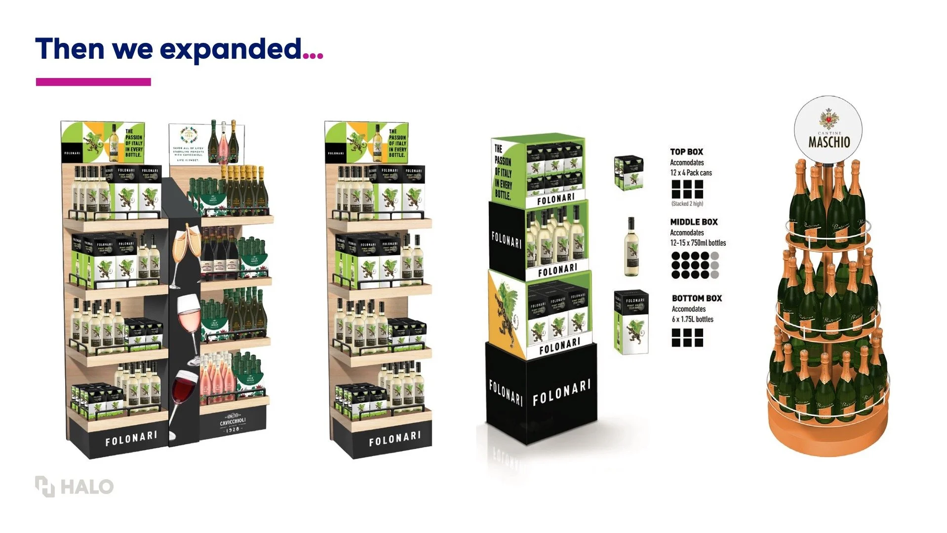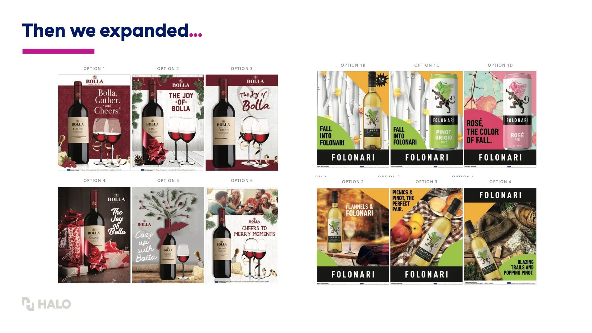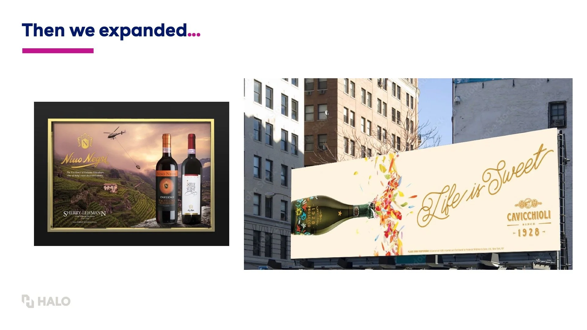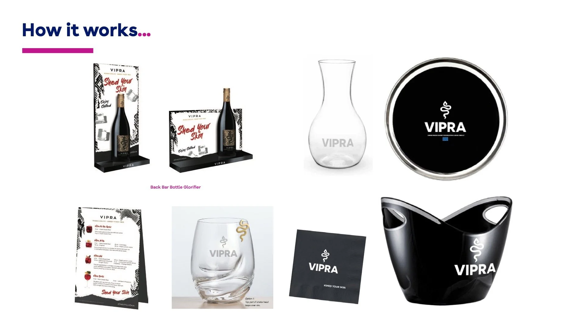 Frederick Wildman & Son’s has been a premier NYC wine & spirit importer since 1934. Their portfolio consists of 50+ wines from all over the globe and several spirits. We started working with them in 2018 and have grown our relationship ideating and delivering small ad hoc and seasonal display items to becoming their retained BTL agency of record. We have launched, revived and refreshed many well known brands on their roster including: Riunite, Bolla, Lamberti, VIPRA, Maschio and Chartreuse to name a few. Our First assignment was to relaunch a sparkling Italian red wine called VIPRA - They had very few assets, a logo and packaging. We needed to breath life into the brand, give it a voice and look. Once established we developed a tool kit and released it to the US.